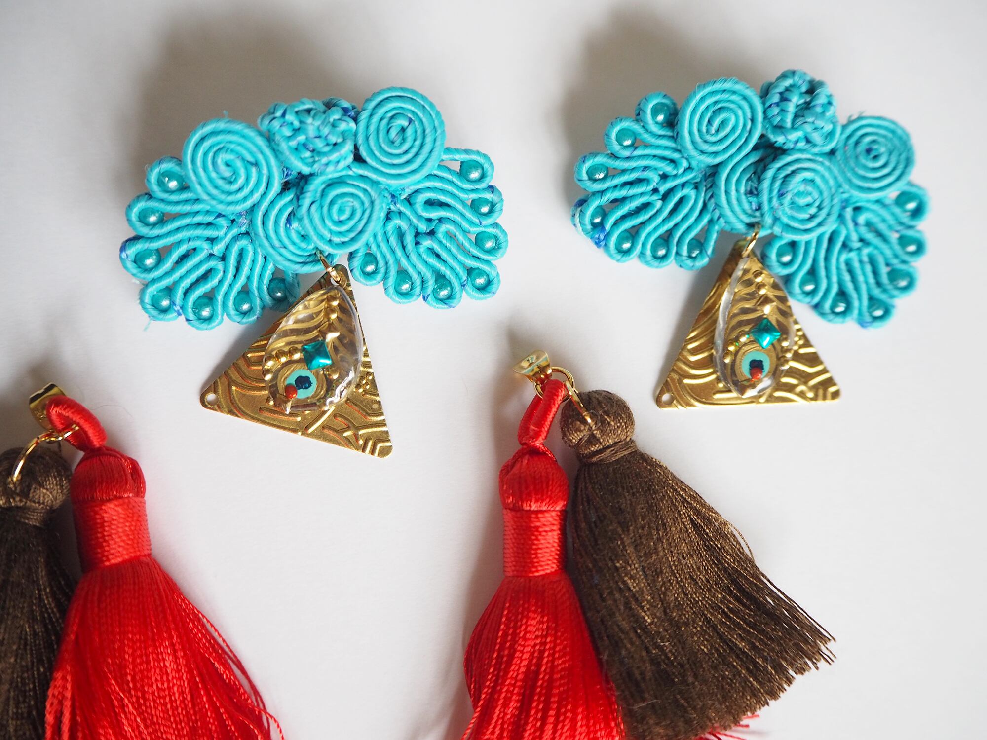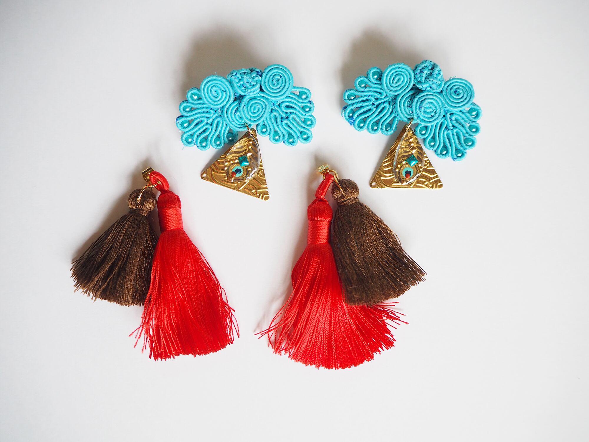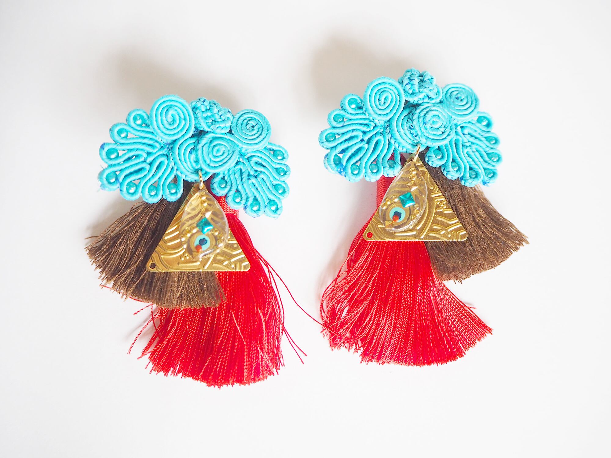 チャイナボタンのピアス【Peacock×Red】