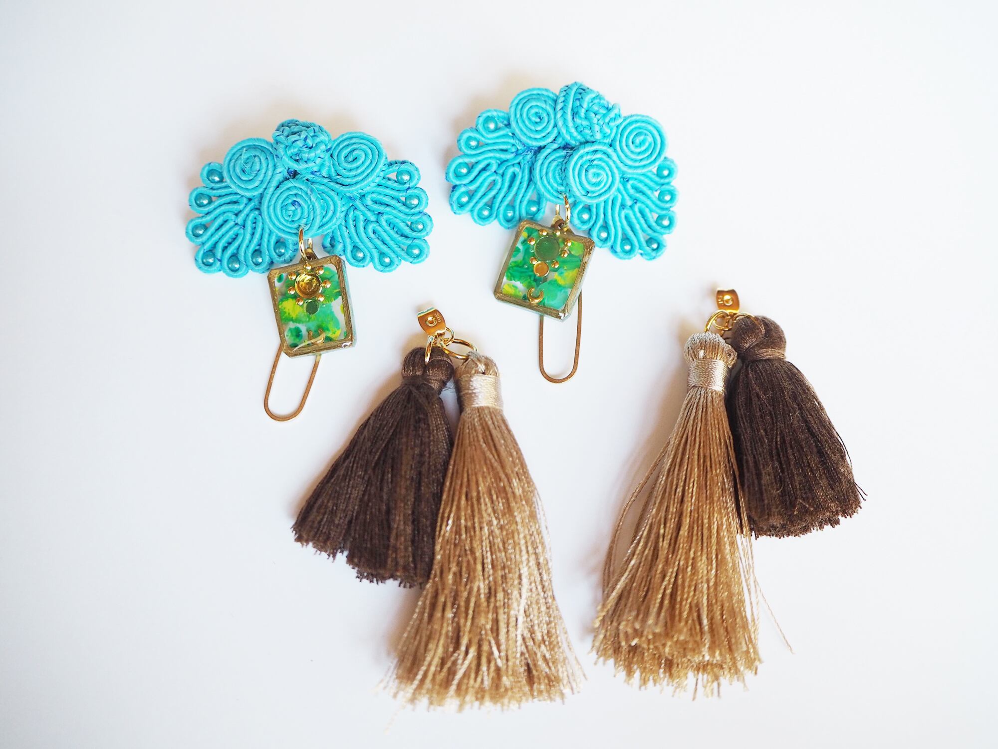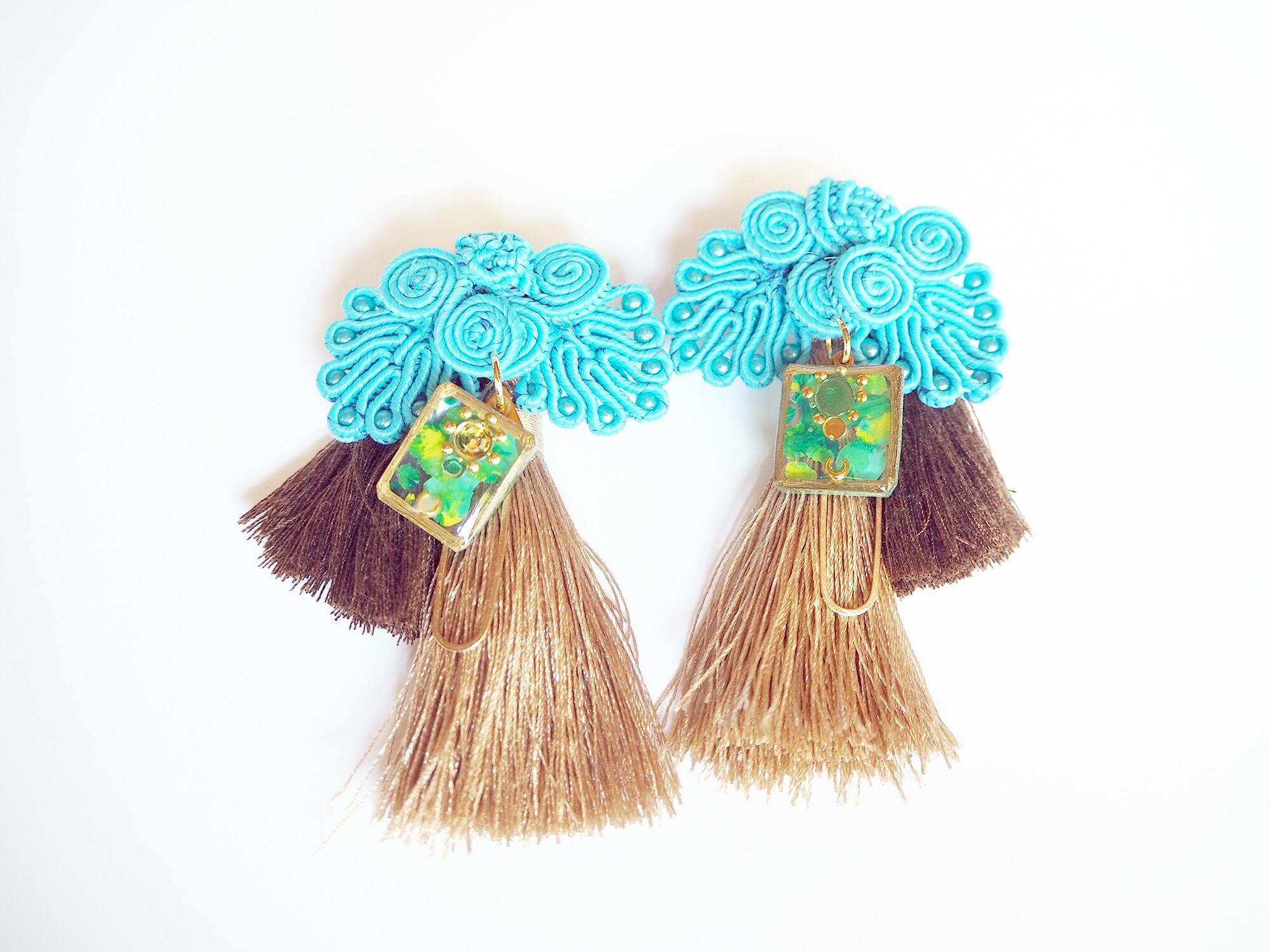チャイナボタンのピアス【Peacock×Beige】