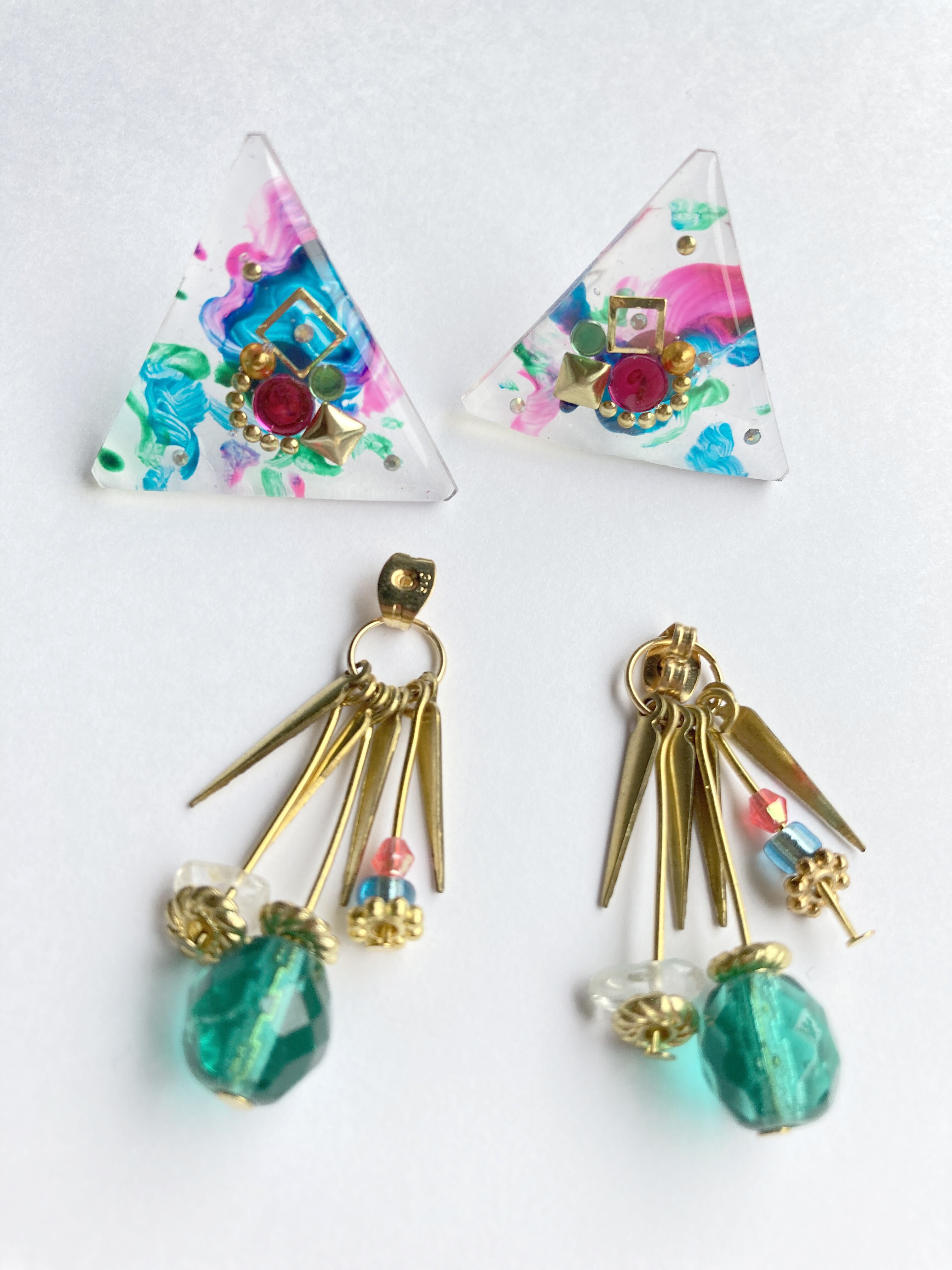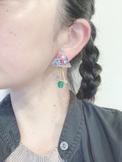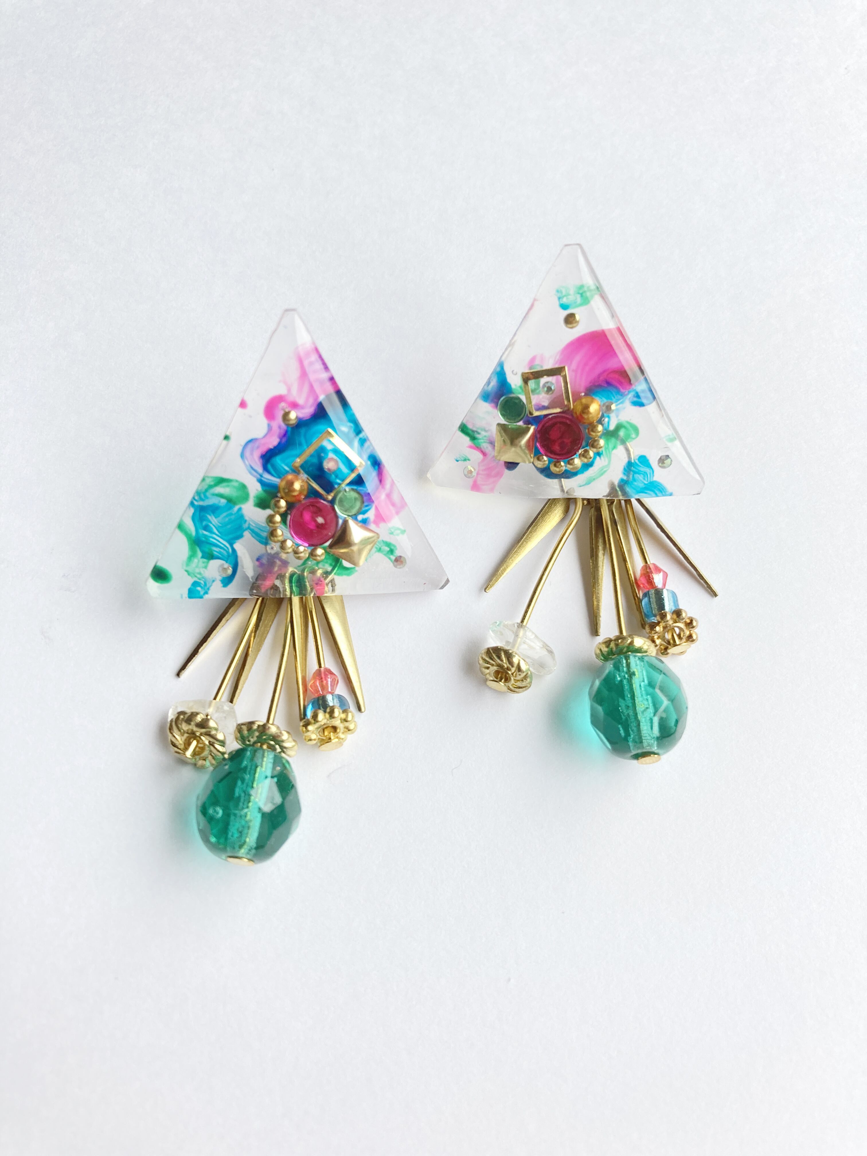 ペイントさんかく×ふりふりピアス【Clear Green】