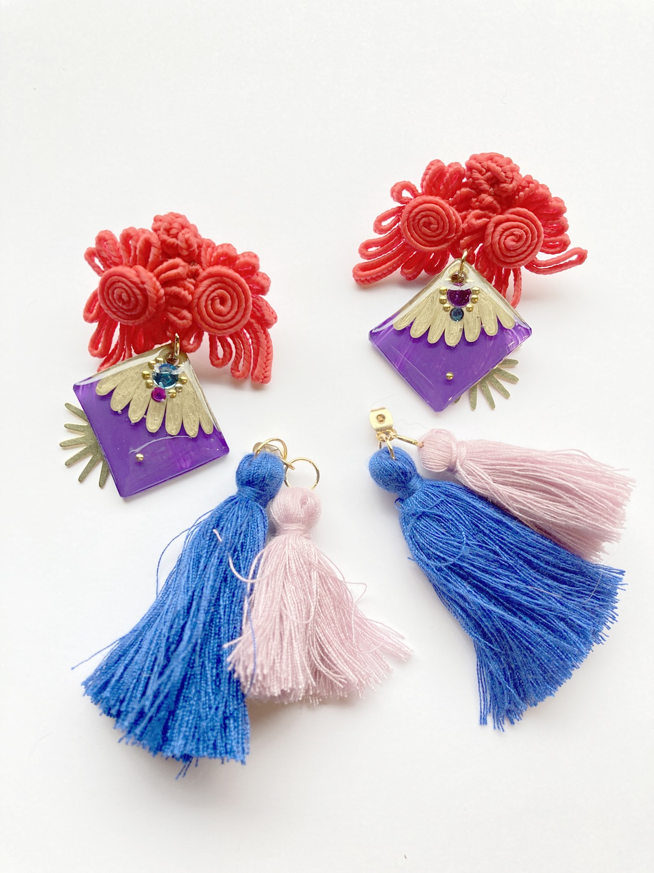 チャイナボタンのピアス【Red×Blue】