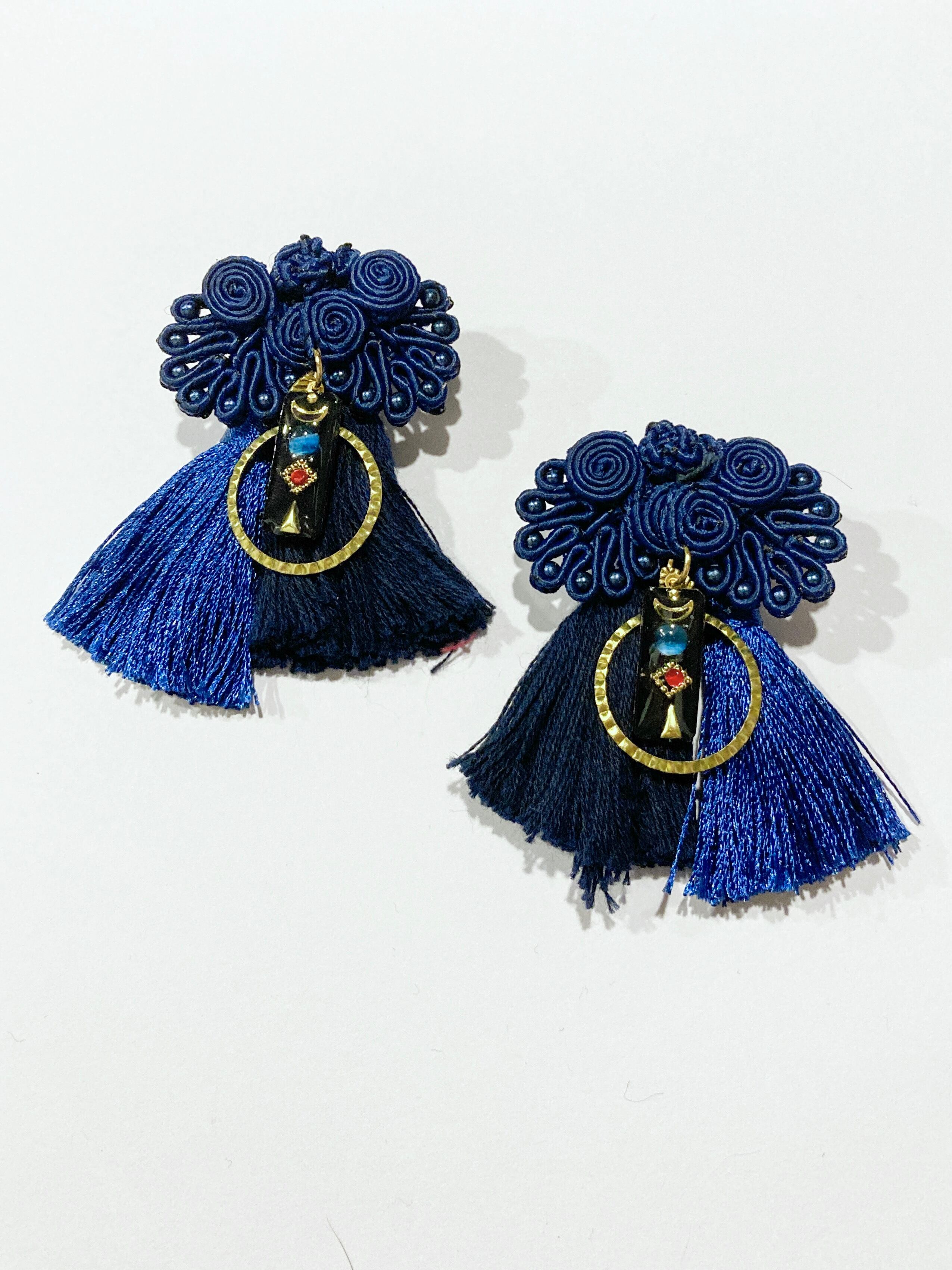 チャイナボタンのピアス【Navy×Blue】2