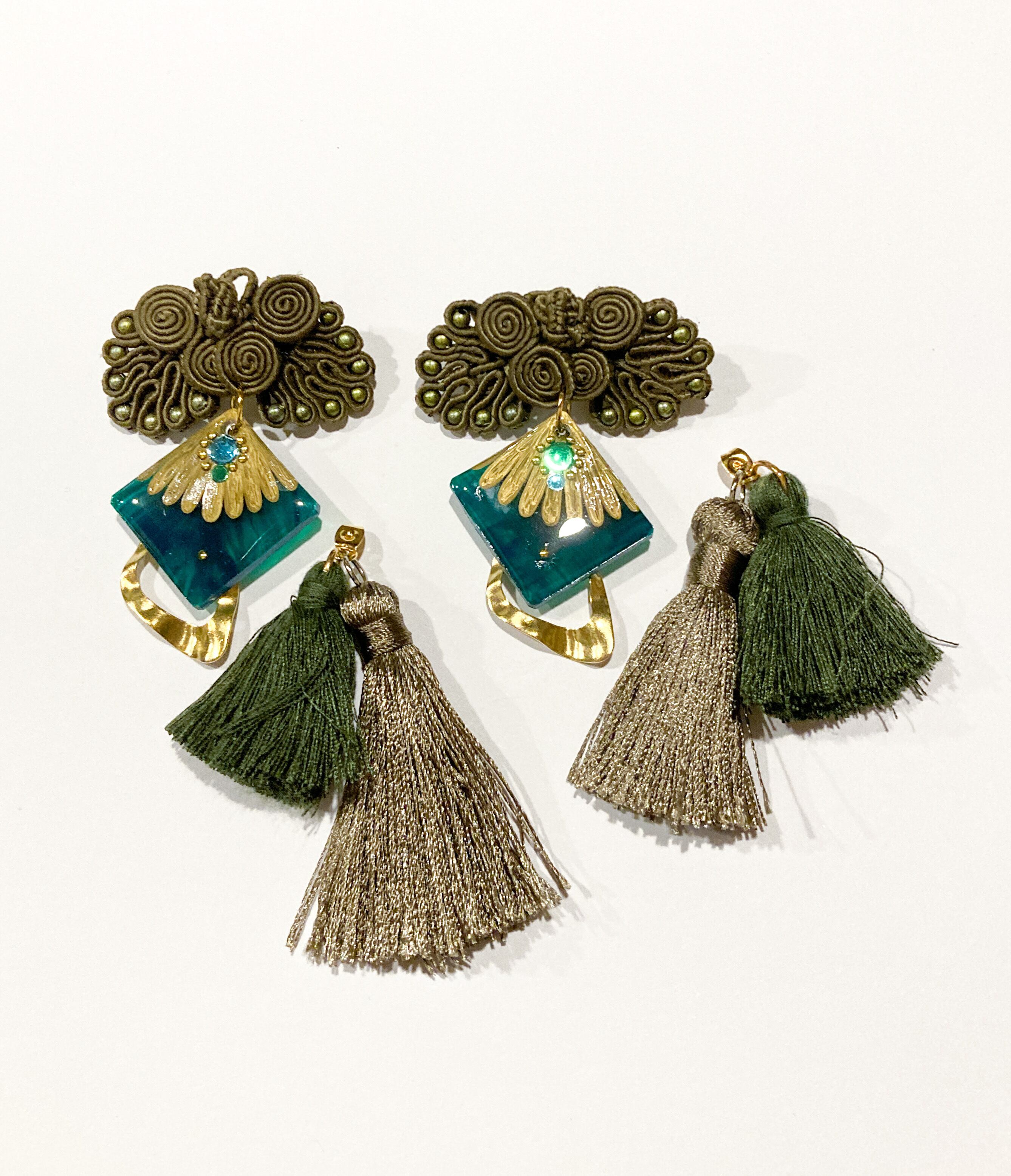 チャイナボタンのピアス【Khaki×Dark Gray】