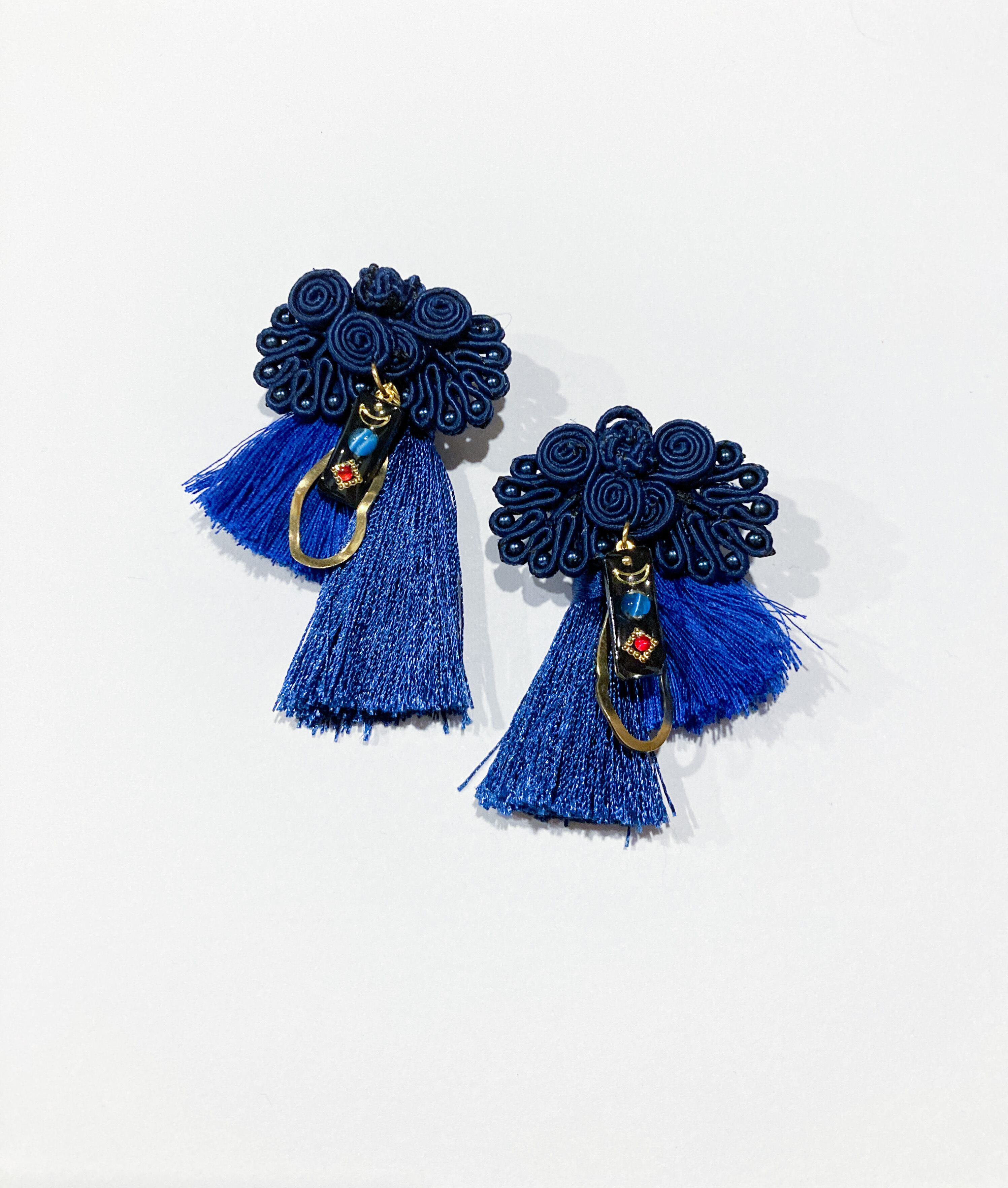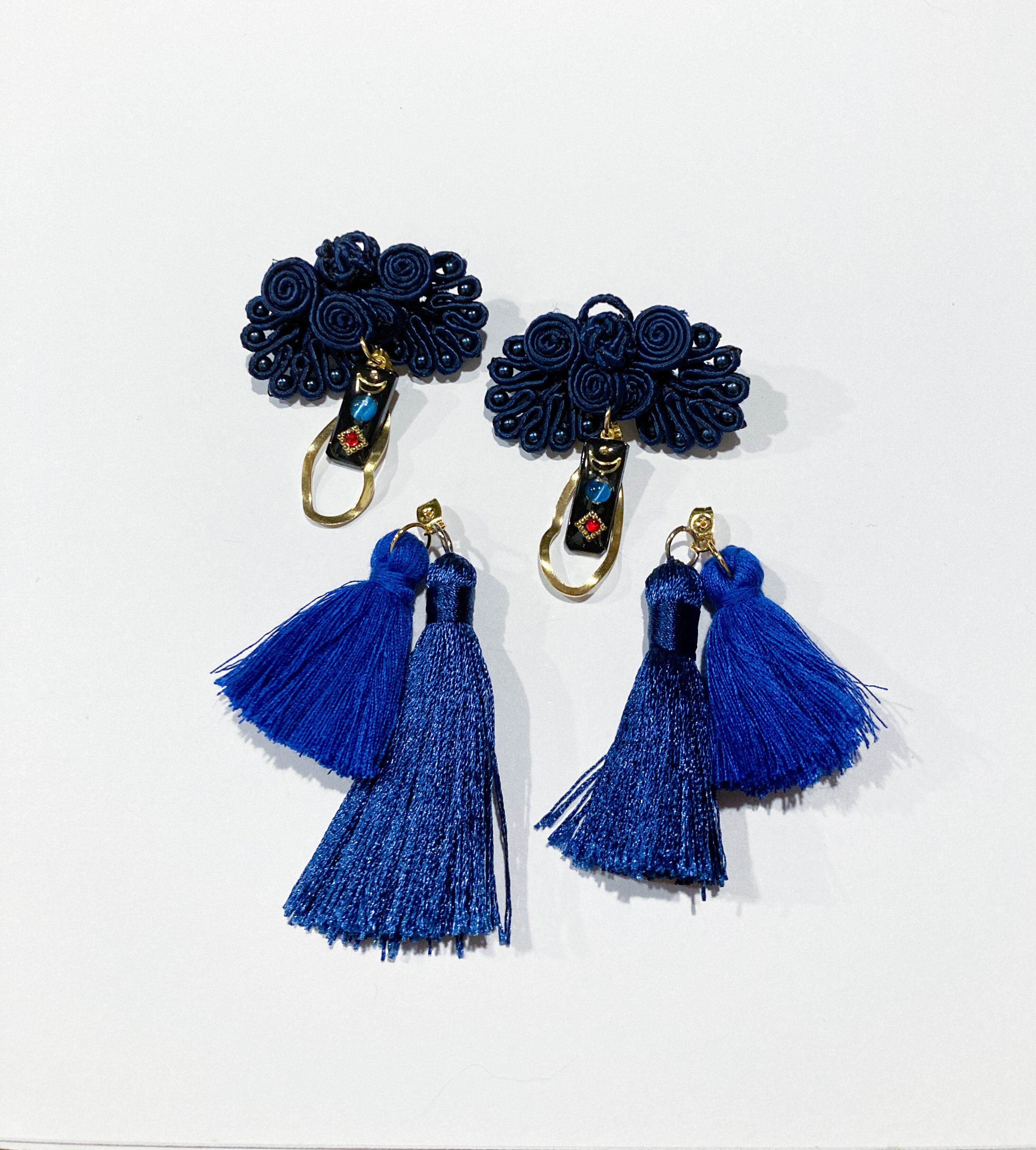 チャイナボタンのピアス【Navy×Navy】