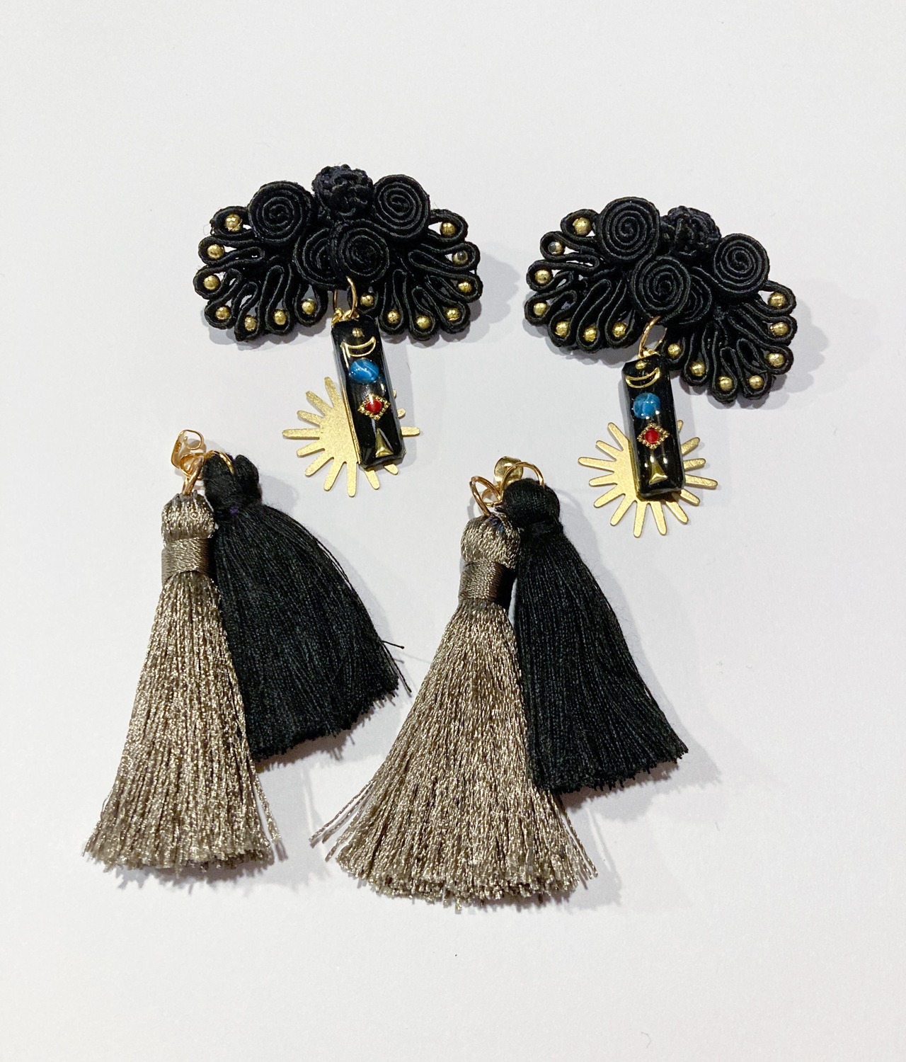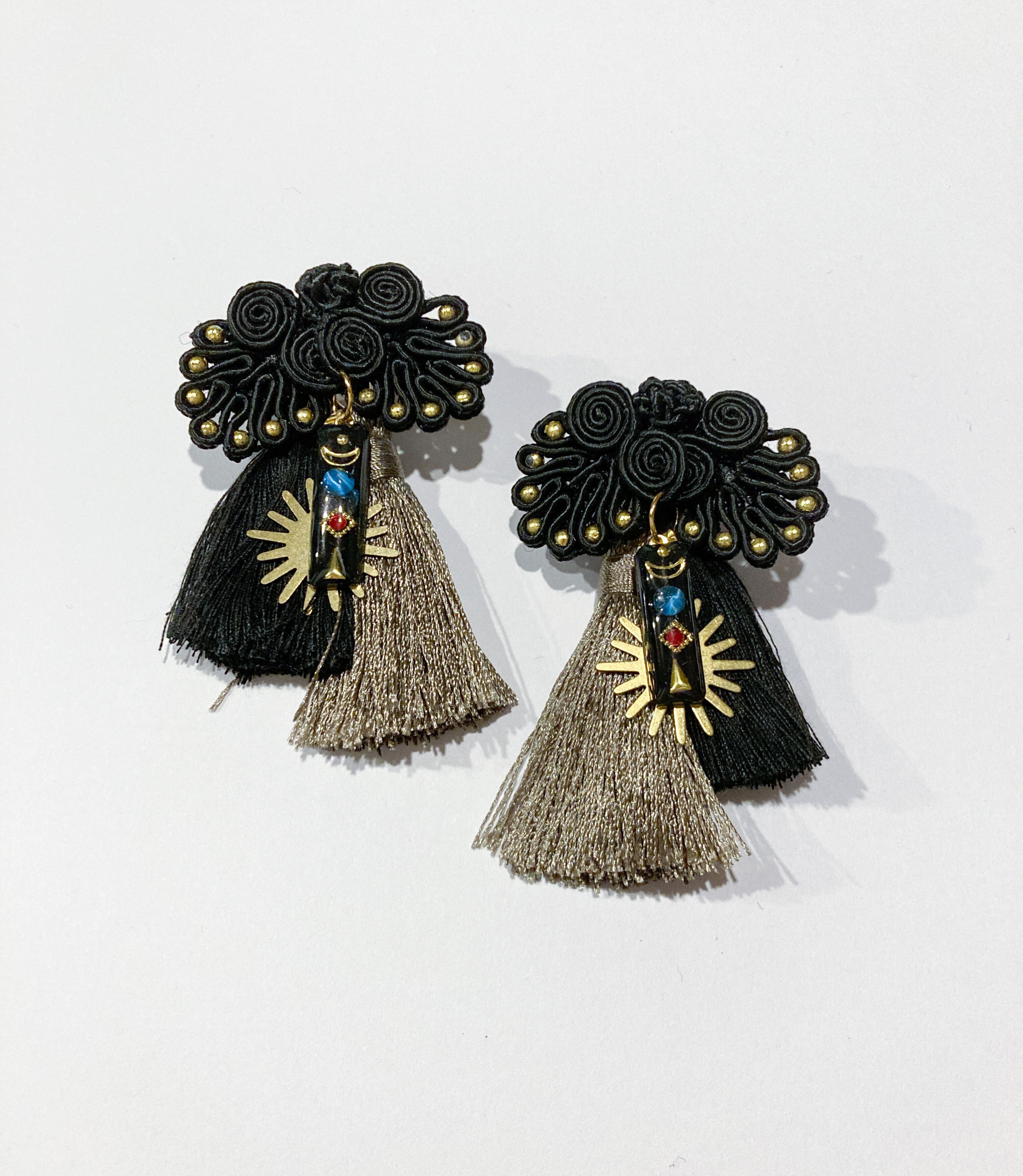 チャイナボタンのピアス【Black×Dark Gray】2